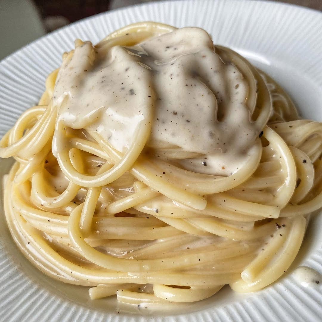Cacio e Pepe is luxuriously creamy with a bold, peppery bite and deep umami from Pecorino Romano. The sauce is smooth and glossy, coating the pasta without heaviness, making each bite rich yet balanced.