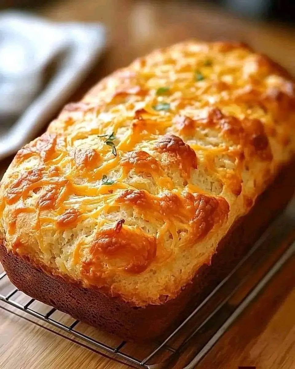 This cheddar cheese quick bread is soft and moist inside with a lightly crisp, cheesy crust. Each bite is savory, buttery, and rich, making it perfect as both a side dish and a satisfying snack.
