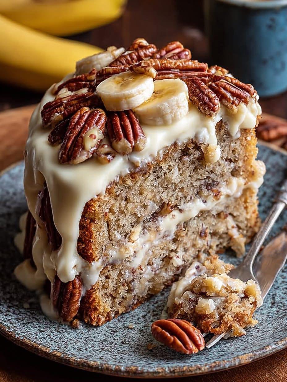This cake is incredibly moist with rich banana flavor and crunchy pecans throughout. The crumb is tender, and the nutty sweetness makes every bite satisfying.
